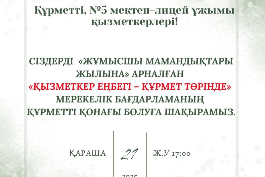 📢 Ата-аналар кезекшілігі! 👨👩👧👦 №5 мектеп-лицейінде білім алушылардың қауіпсіздігін қамтамасыз…Қараша 20, 2025