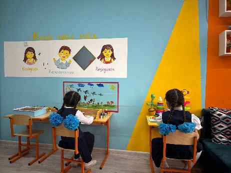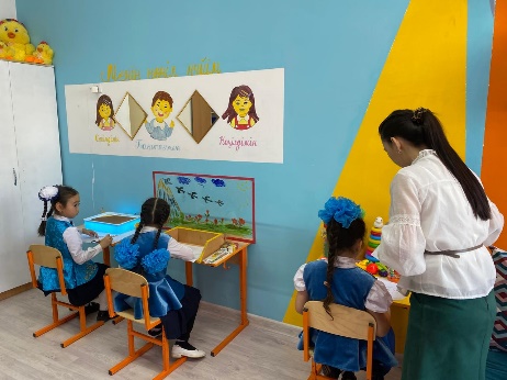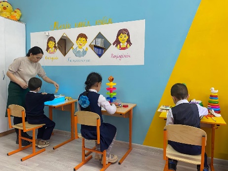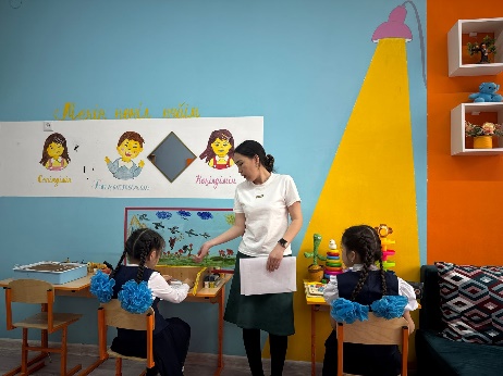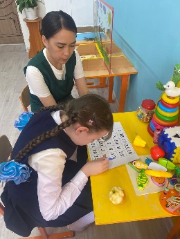 2025 жылдың 28.04-02.05 күндері аралығында ЕББҚ оқушыларға суреттер бойынша сөйлем құрау, ойлау операцияларын салыстыру және дамыту, артикуляциялық, кинезиологиялық жаттығулыр жүргізілді. Жұмыс барысында оқушылардың зейіні, ойлау және есте сақтау қабілеттері дамыды.