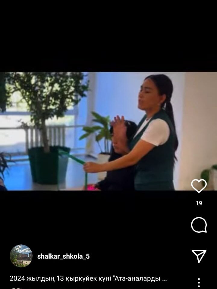 Ата-аналардың білім беру мақсаттарына табысты қол жеткізу үшін жасөспірімнің интеллектуалдық дамуын белсенді қолдауына ықпал ету мақсатында 2025 жылдың 31 қаңтар күні “Біртұтас тәрбие” бағдарламасы аясында “Ата-аналарды педагогикалық қолдау орталығы” жоспарын жүзеге асыруда “Балаңыздың ақылын, ойын оятыңыз!» тақырыбында семинар-тренинг жүргізілді. Қатысқан ата-аналар саны: 28.