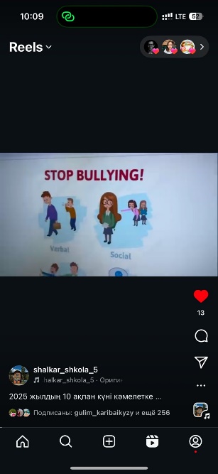 2025 жылдың 10 ақпан күні кәмелетке толмағандар арасындағы буллингке қарсы көзқарасын
