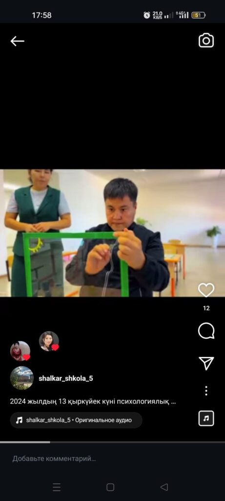 2024 жылдың 4 қазан күні психологиялық қызмет жұмысының жоспарына сәйкес «Көңілі көтеріңкі ұстаздың, еңбегі де жемісті» атты мерекемен құттықтау челленджі өтті.